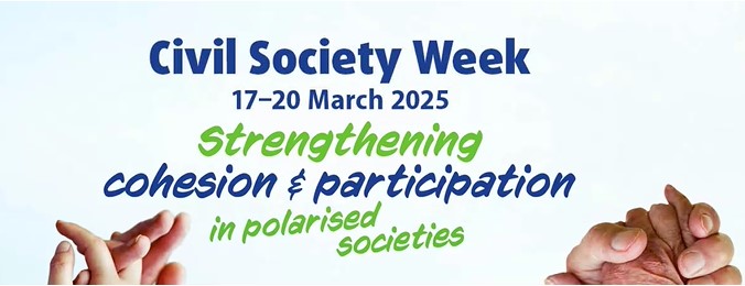 Per affrontare questi problemi urgenti, la Settimana della società civile 2025, dal 17 al 20 marzo, riunirà una gamma diversificata di attori della società civile provenienti dall'Europa e da altri Paesi, offrendo una piattaforma unica per impegnarsi in dibattiti critici, condividere le migliori pratiche e collaborare per sviluppare soluzioni che promuovano la coesione sociale e rafforzino l'impegno democratico.