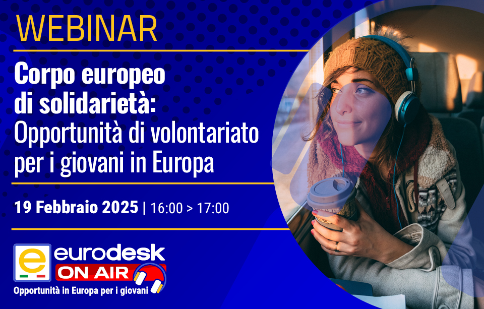 Anche per il 2025 i Punti Locali della rete nazionale italiana Eurodesk organizzano un ciclo di webinar in/formativi sulle opportunità di mobilità dei giovani per studio, tirocinio, lavoro e volontariato. I webinar saranno condotti da esperti/e dei vari settori interessati e tratteranno temi come la ricerca delle informazioni sulle opportunità di mobilità, le procedure per accedere alle offerte di mobilità e la documentazione da produrre.