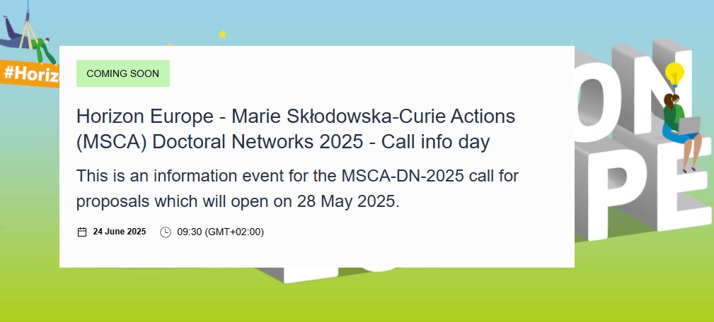 Si tratta di un evento informativo sul bando Marie Skłodowska-Curie Actions Doctoral Networks 2025 (MSCA-DN-2025) che sarà pubblicato il 28 maggio 2025.