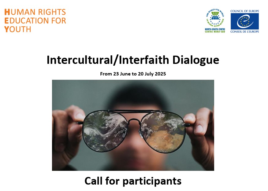 Il Centro Nord-Sud del Consiglio d'Europa ha aperto le candidature per il corso HEY (Human Rights Education for Youth) sul dialogo interculturale/interreligioso. Questa edizione, in lingua inglese, si terrà dal 23 giugno al 20 luglio 2025.